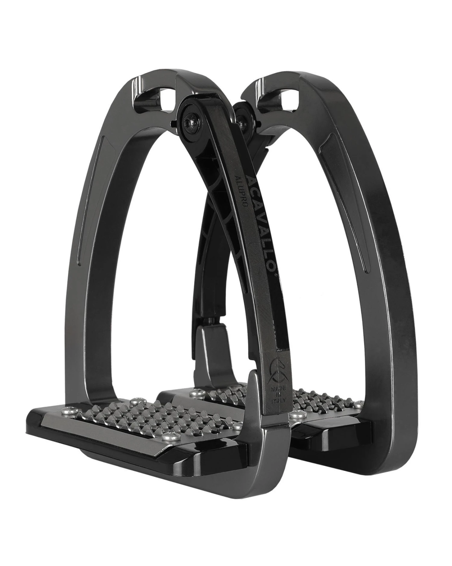 The stirrup bow is made of aluminum, while the opening arm is made of a special polyamide material. The stirrup pad is made of polyamide, too, and the tread is fabricated from stainless steel. The “AluPro” model, in principle, provides the same function as the Arena “HiFlex”, but it is based on different materials.
