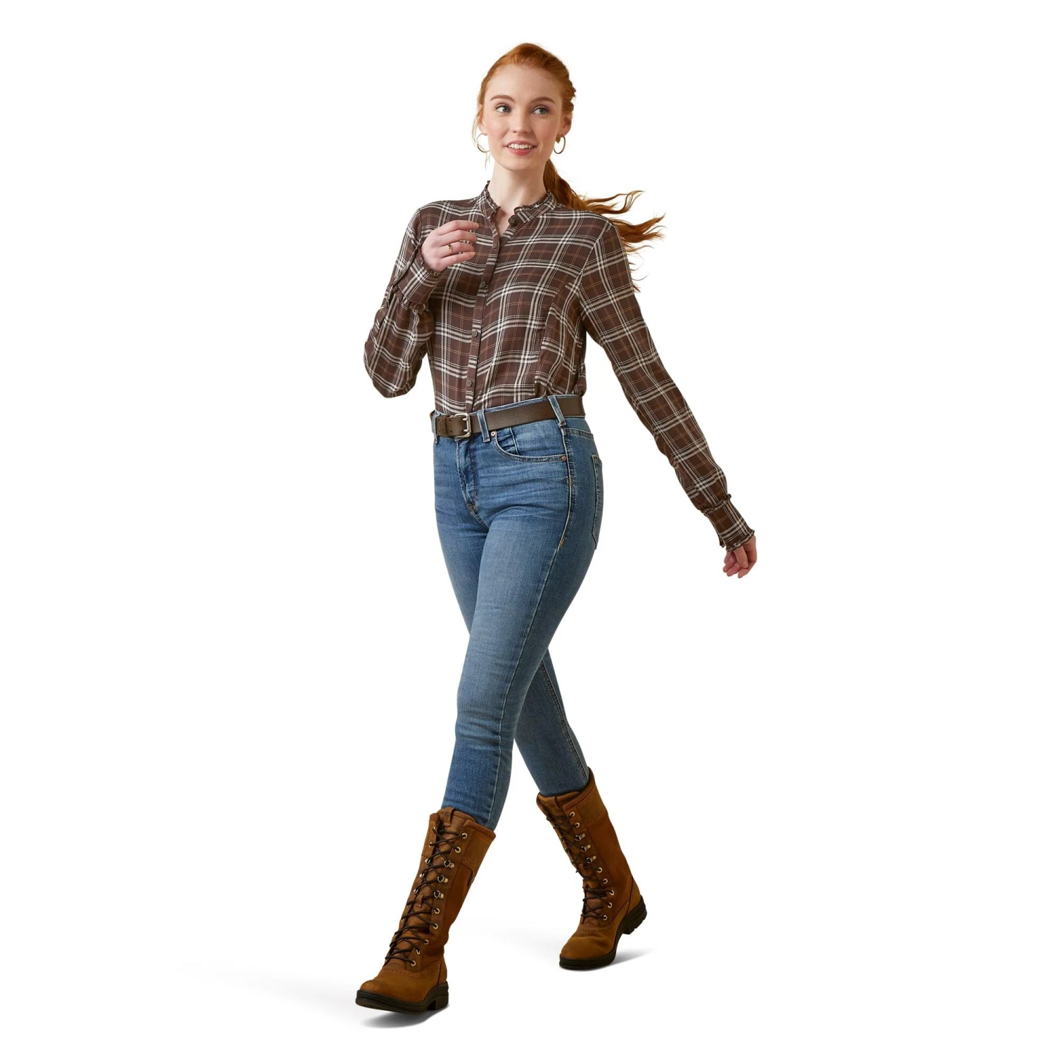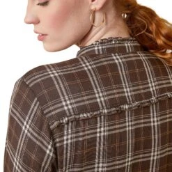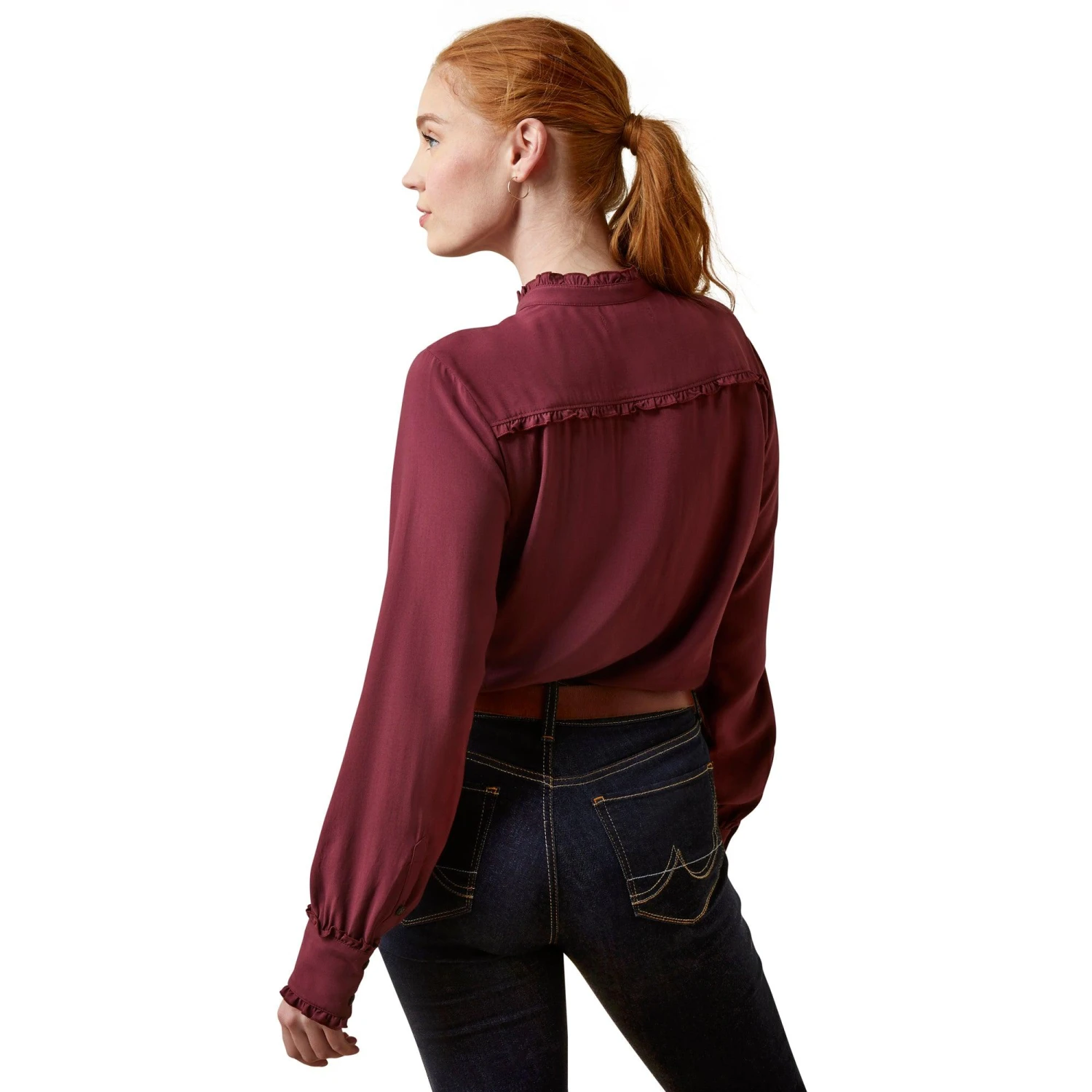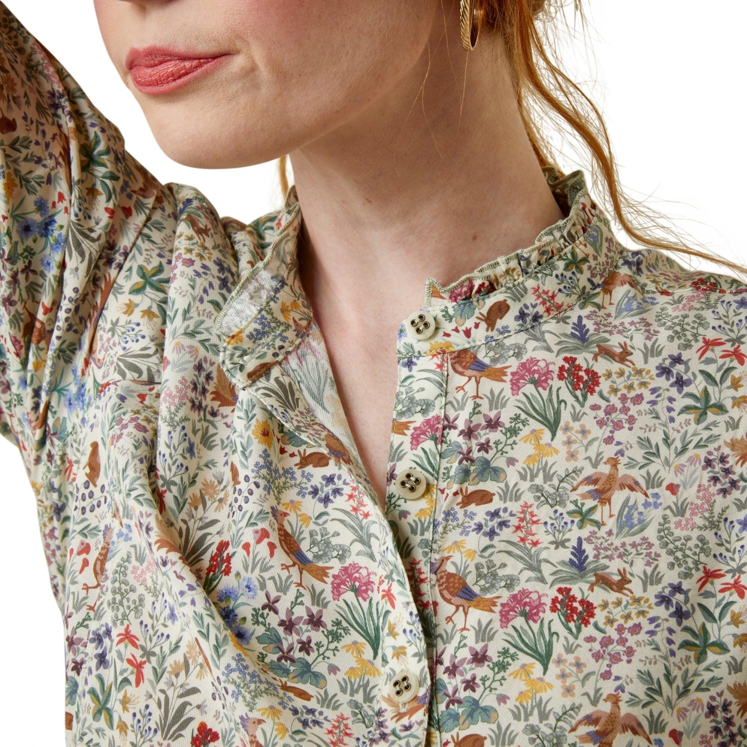 Constructed of a light, silky twill with a feminine mock neckline, the Clarion is the epitome of countryside elegance. Equally fitting when worn for coffee with friends or a festive dinner, there is no wrong place to wear it.