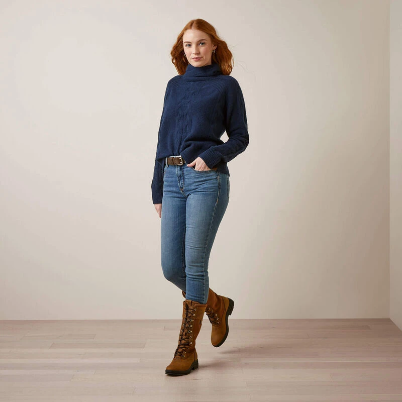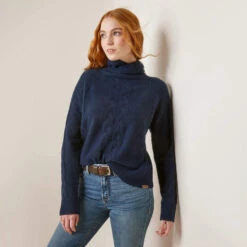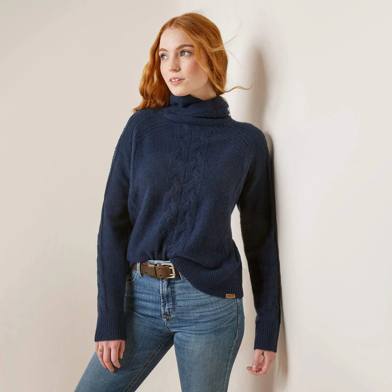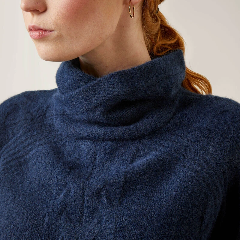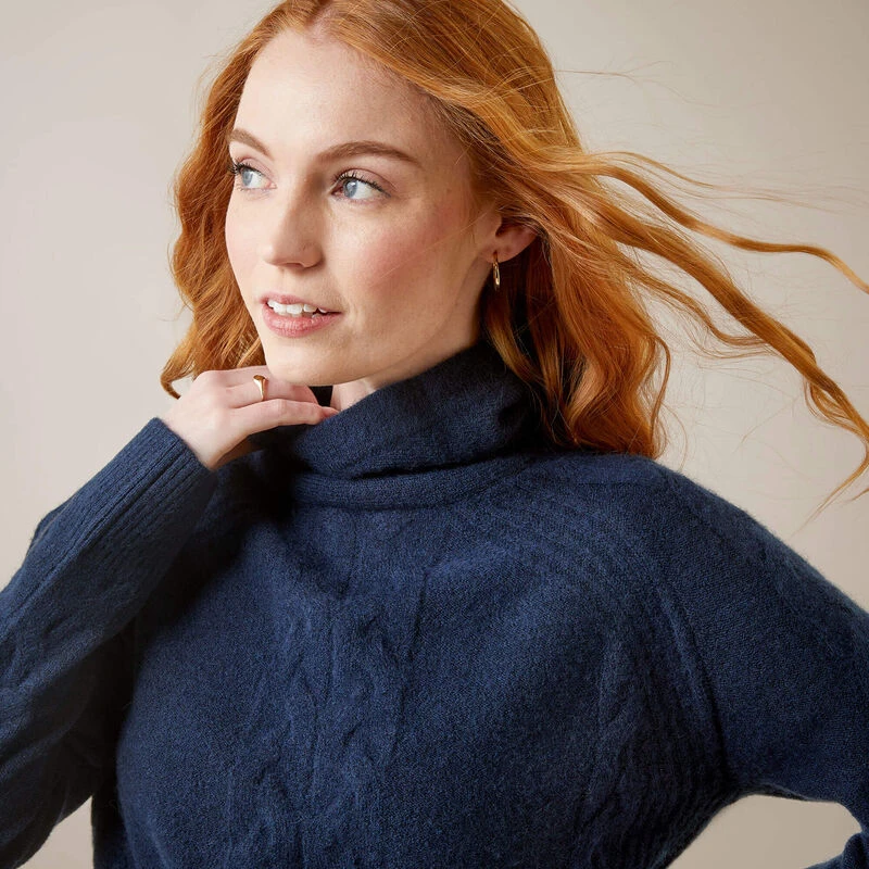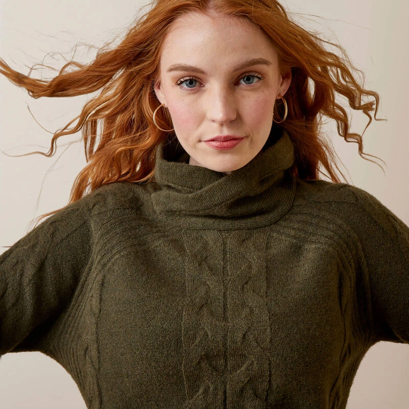 Welcome sweater weather with this standout pullover. Novato provides both warmth and style: a wrap high neckline and a striking mix of cable and rib-knit. Made from an ethically sourced wool blend.