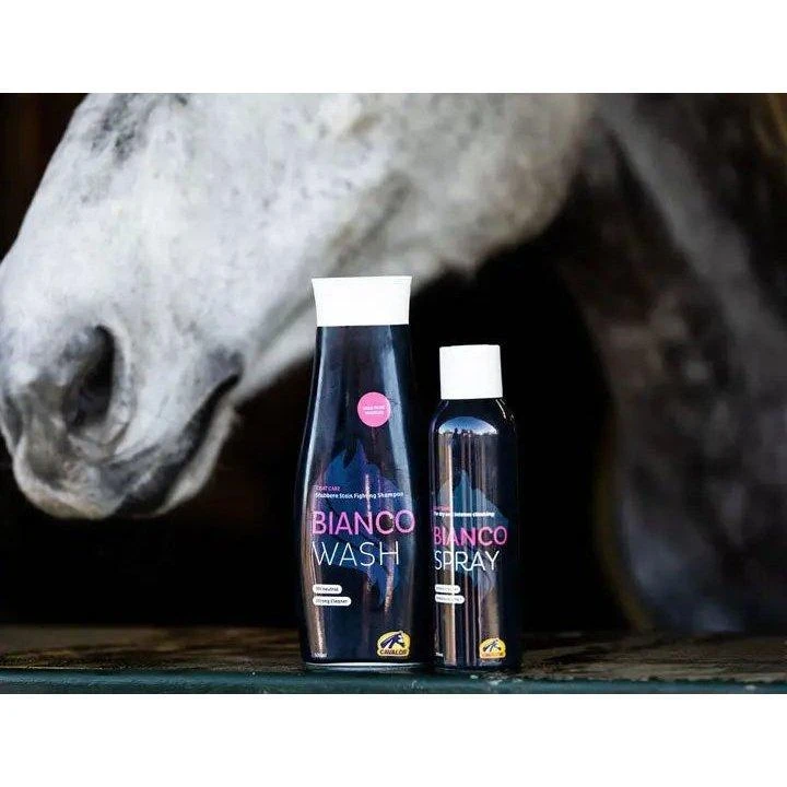 Cavalor Bianco Spray is designed for use on grey horses and white legs, but also for dirty or stained areas on other coat colours. The result? A clean coat that shines with a silky feel and a marvellous scent.