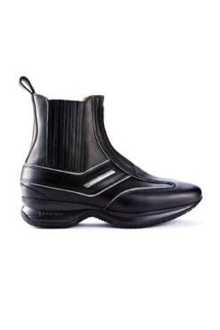 Short boots in grain calfskin WRAT leather, flat reflecting grey piping, front zipper, elastic side covered in leather, Ride and Fly sole.Â