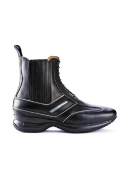 Short boots in grain calfskin WRAT leather, flat reflecting grey piping, front fastening, elastic side covered in leather, Ride and Fly sole.