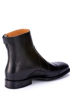 Short boots in grain calfskin WRAT leather, rear zipper comoing to the font of the foot, upper zip guard and DS Technology Vibram sole.