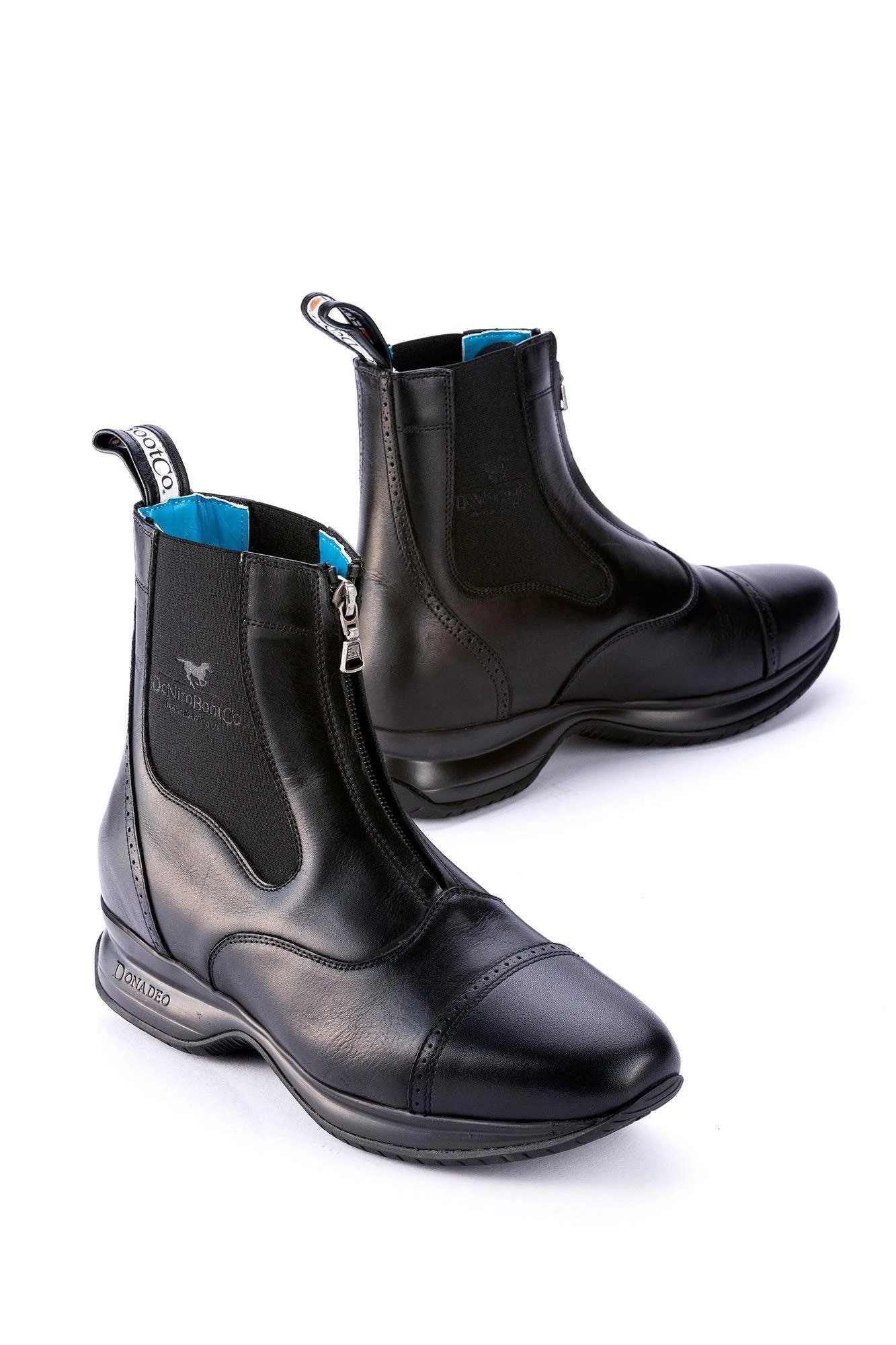 Short boots in grain calfskin WRAT leather, thermoregulating and breathable water – resistant lining, front zipper, elastic side, Ride & Fly sole.