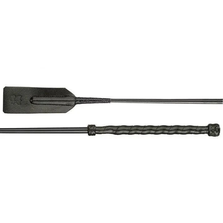 Nylon stick, shiny, leather wave grip, large leather flap, two leather buttons.