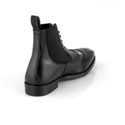 The Gemini riding boot by EGO7 has a sporty and elegant design. It is made of high quality cowhide leather and polyurethane. This makes it comfortable to wear and the leather fits tight to the foot. Thanks to the lacing, it can be individually adapted to the foot and adjusted in width. The elastic side inserts are breathable and ensure a high wearing comfort as well as sufficient freedom of movement. The profile of the sole provides a secure grip in the stirrup and is also comfortable when walking. Thanks to the special rubber material, the sole is lightweight and flexible. With the help of the rear flap, the paddock boots Gemini can be easily dressed and undressed. The color contrast on the inside is a visual feature of these paddock boots.