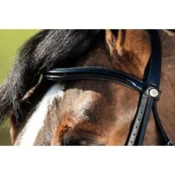 – 3 cm pull-back noseband with anatomic cut, lacquered, padded and lined with soft leather