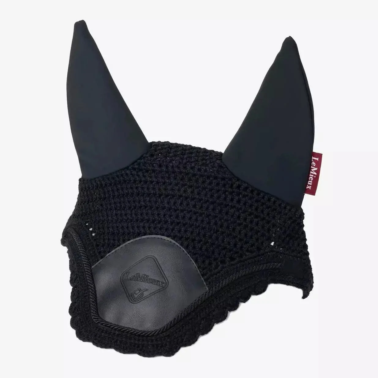 Now featuring a wider design behind the ears for a sleek and secure profile under the bridle. The hand crocheted veil with embossed PU leather panel gives that final elegant touch