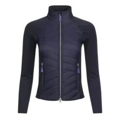 A dynamic quilted front feature panel with stretch side panels in a fitted design make this jacket stylish, comfortable and perfect for peak performance.