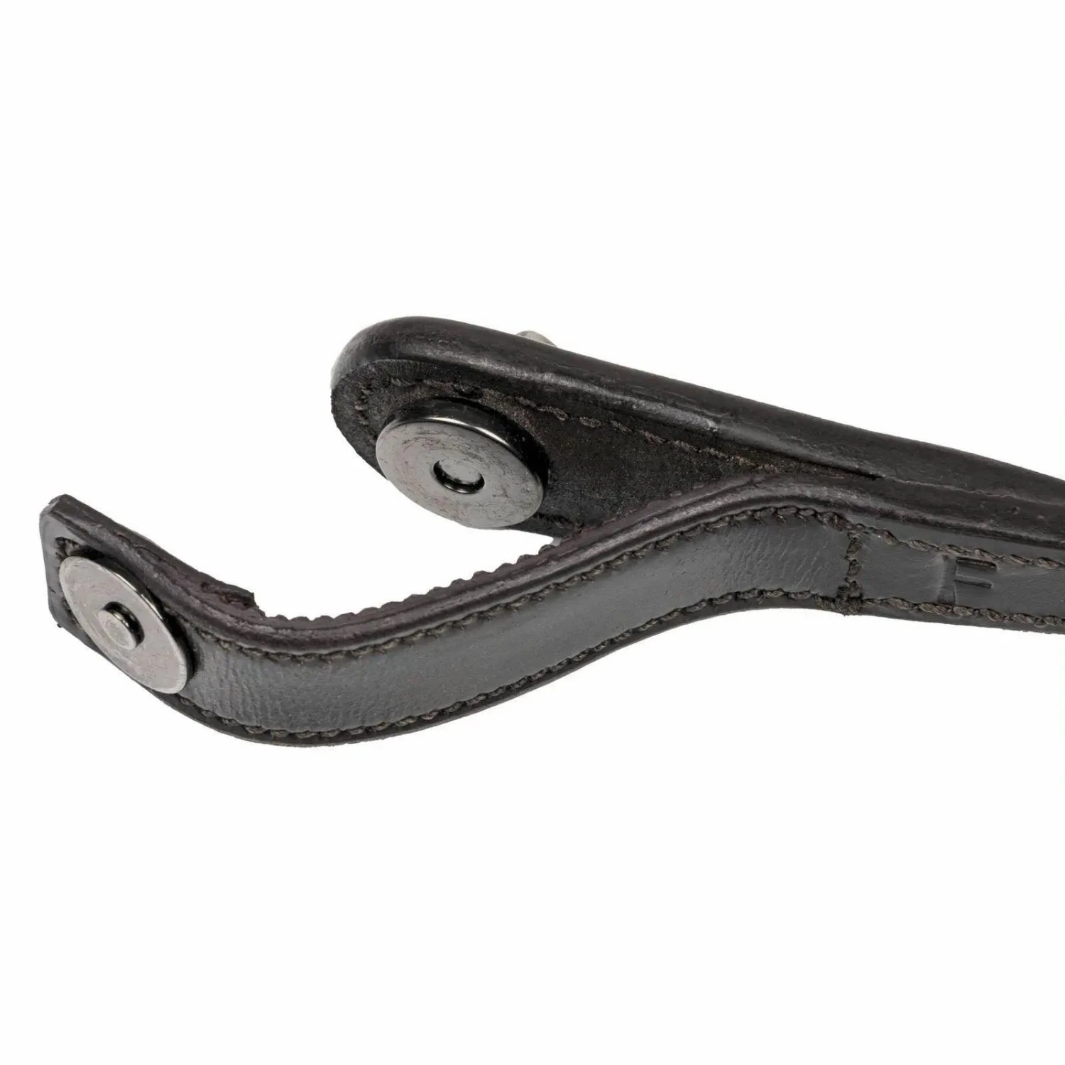 The fine wave shape gives an elegant look, along with high quality, soft leather. The strong magnetic popper closures make it easy to interchange your browband to match perfectly with your horse’s wardrobe and the rubber grip on the inside loop gives added security.