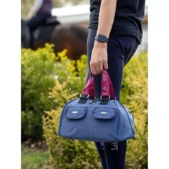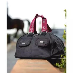 Strong waterproof denier nylon outer. Two useful outer side pockets to carry spurs & accessories. Signature metal badges. Convenient grab handles & zip top