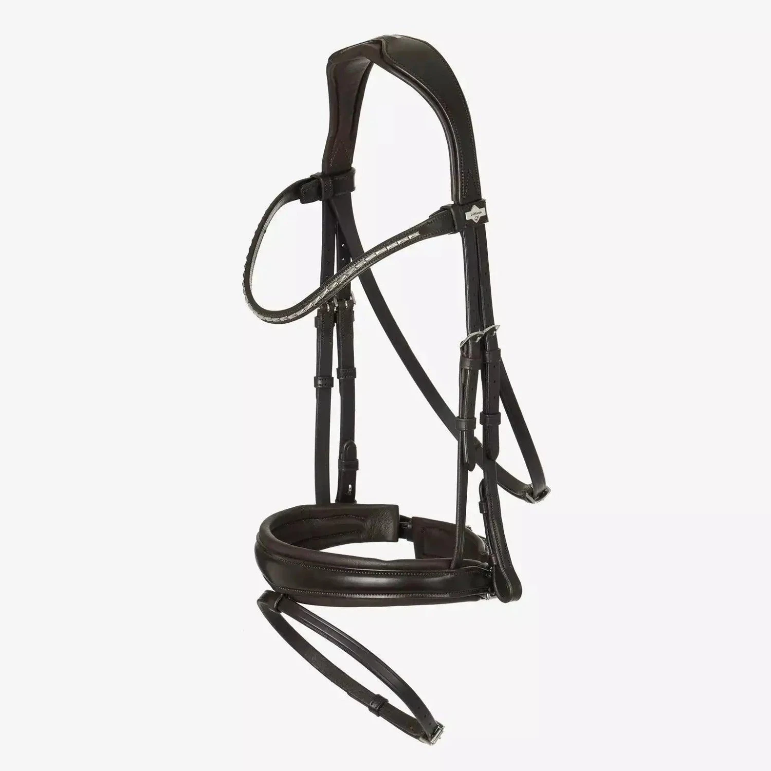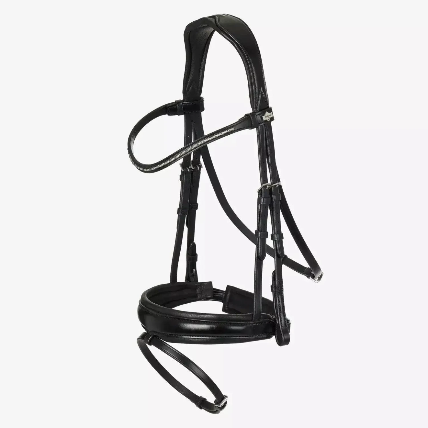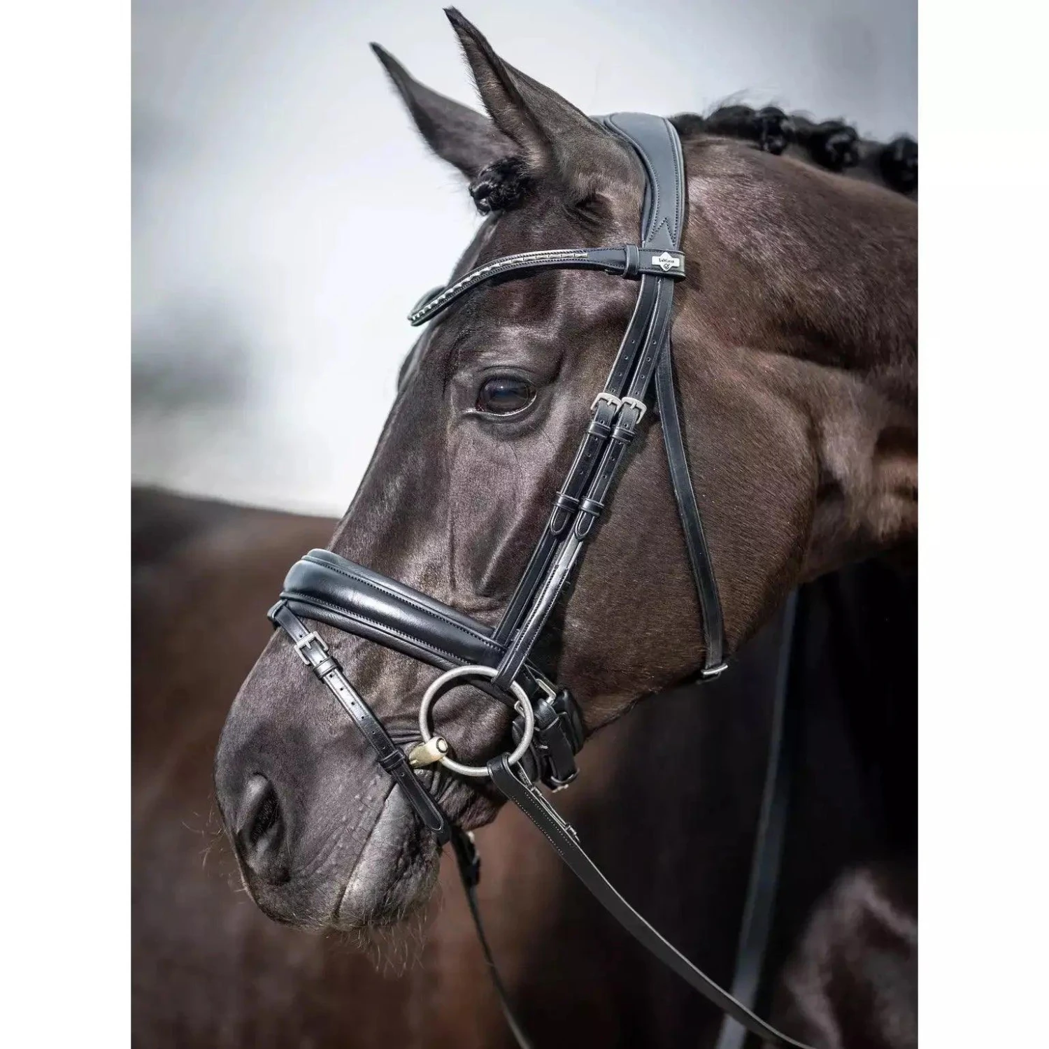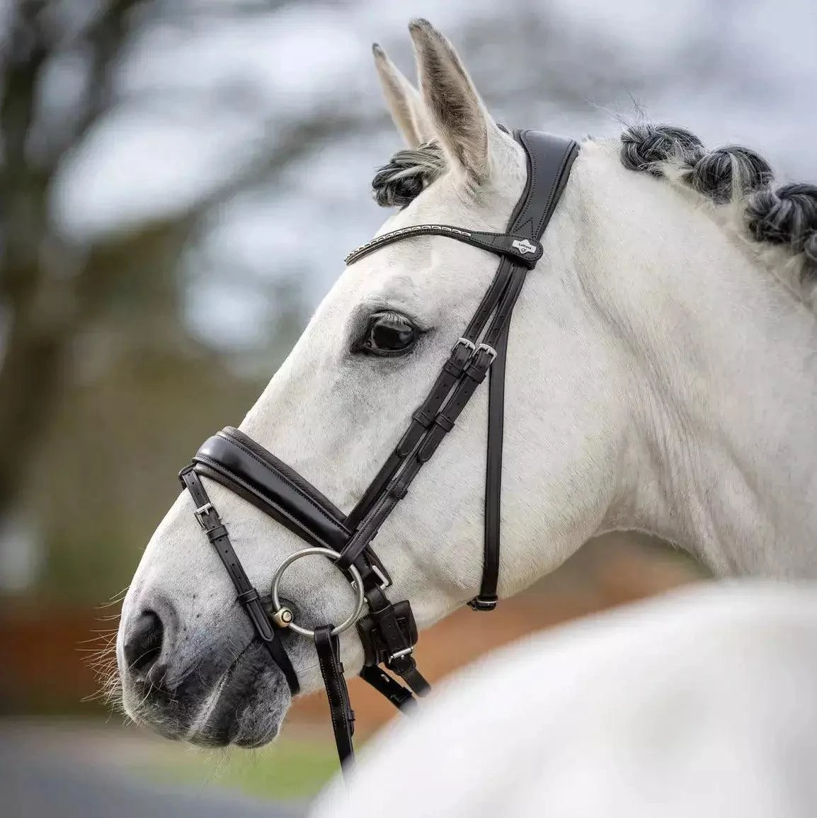 The LeMieux Dressage bridle is a classic example with a contemporary twist and is just made for the ring. The delicate, detachable clincher browband is anatomically shaped and complements the statement padded crank noseband beautifully.