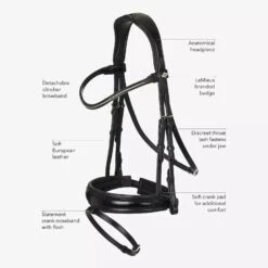 The LeMieux Bridles are made from beautifully soft European leather and feature an anatomically shaped headpiece with soft padded cut away around the ears and poll to aid in the distribution of pressure, maximising comfort.