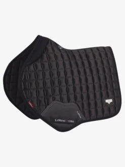 The textured pu leather girth protection area is complimented by an embossed logo and carries the usual signature LeMieux lower girth strap with its inner locking loops. The piece de resistance of the Loire Close Contact Square is its unique metal badge on a leather mount in the lower back corner