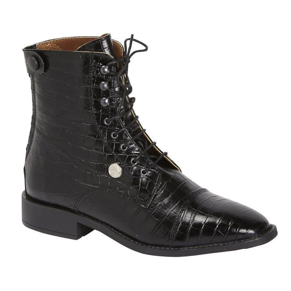 These are the Montar croco jodhpurs boots with laces. The calf is from leather with a Croco print.
