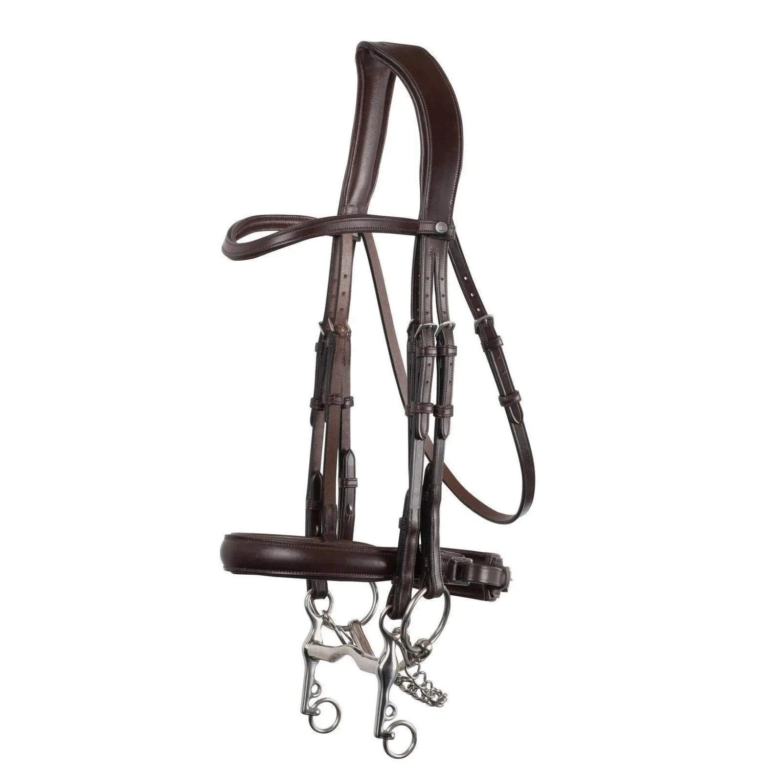 New and innovative ergonomic bridle in Montar leather, stainless steel buckles and creme stitching.