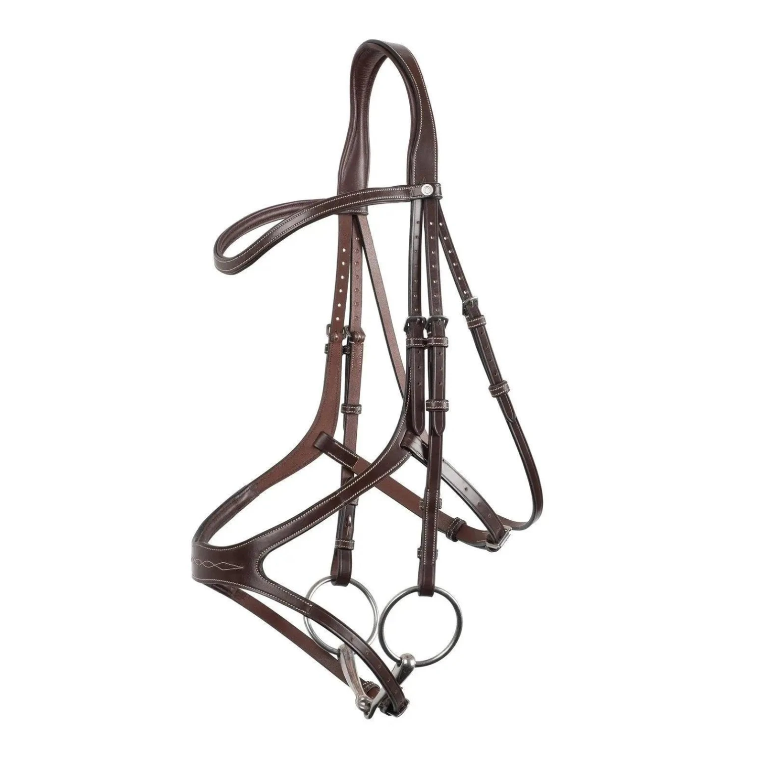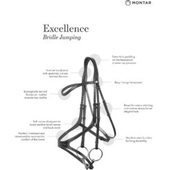 The Montar Excellence Bridle is a new and innovative ergonomic bridle in Montar leather, stainless steel buckles and creme stitching.
