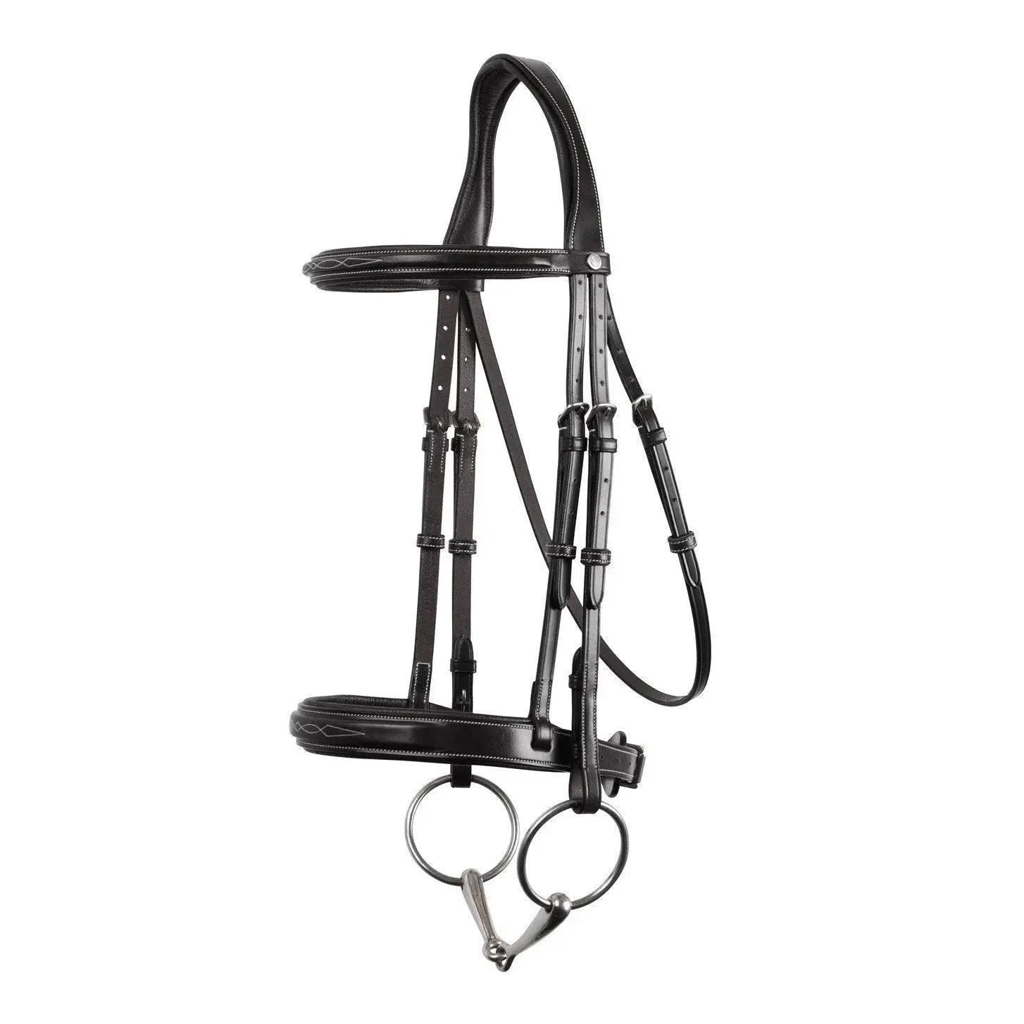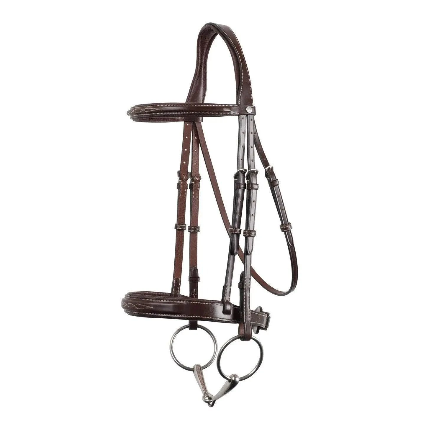 The Montar Hunter bridle has a classic noseband with buckle closure. The front of both the browband and noseband are raised and decorated with a beautiful creme stitching to give this bridle an elegant look. Different types of reins with matching decoration are available.