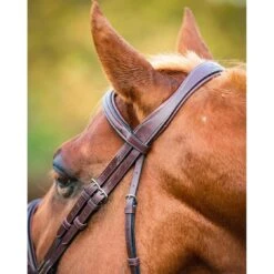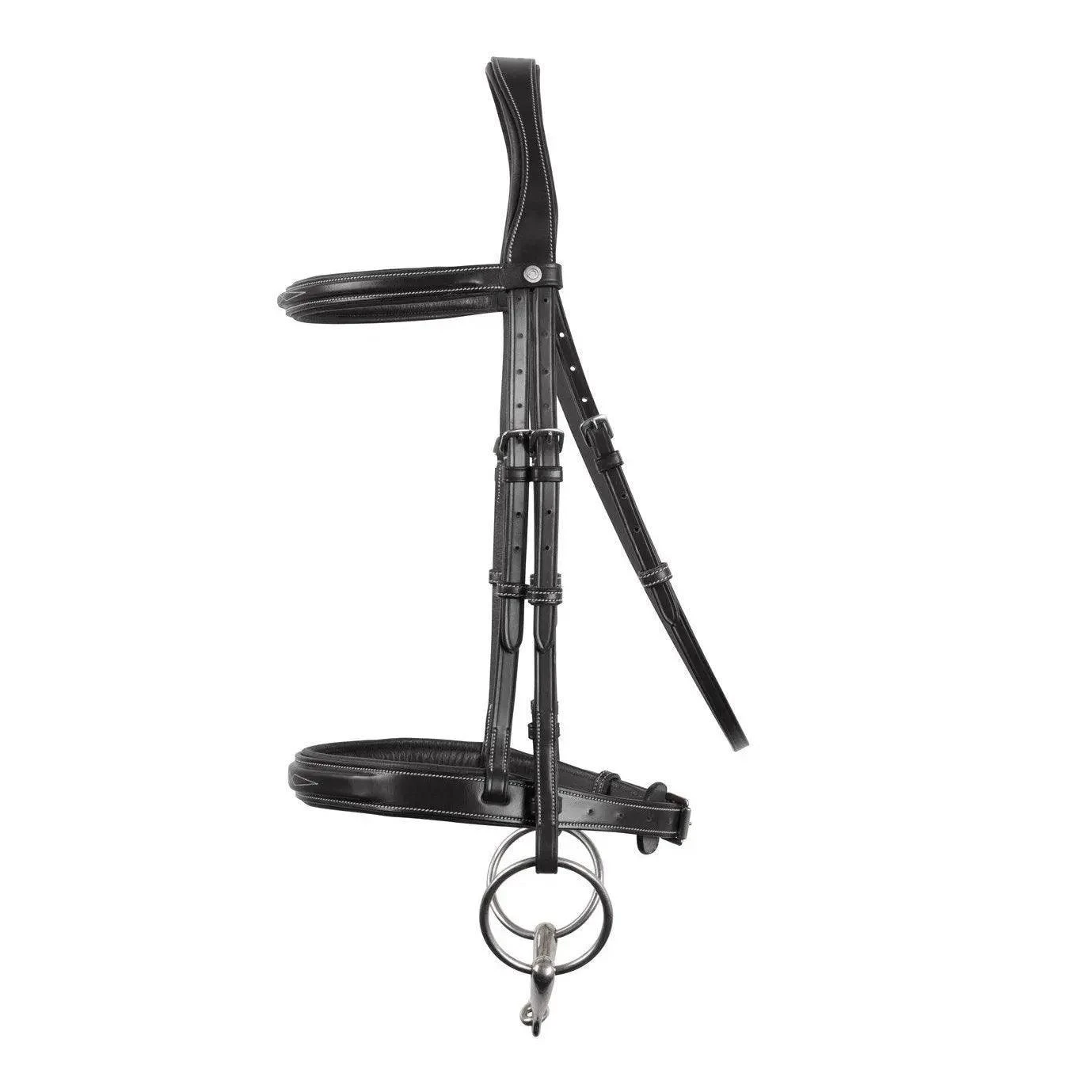 The anatomic neckpiece is cut behind the ears to give more space for sensitive horses with a narrow poll area.