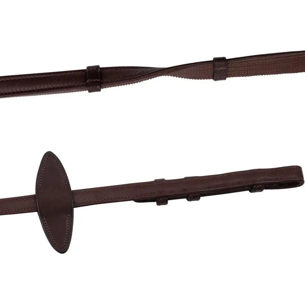 Narrow reins with leather/rubber grip and rein stops. The reins are produced in extra soft leather for an extremely comfortable grip, which combined with the rubber inside gives you maximal control.