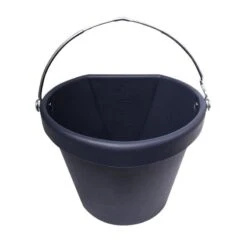 The front of the bucket is slightly bent downwards, so horses can easily eat or drink out of this bucket.