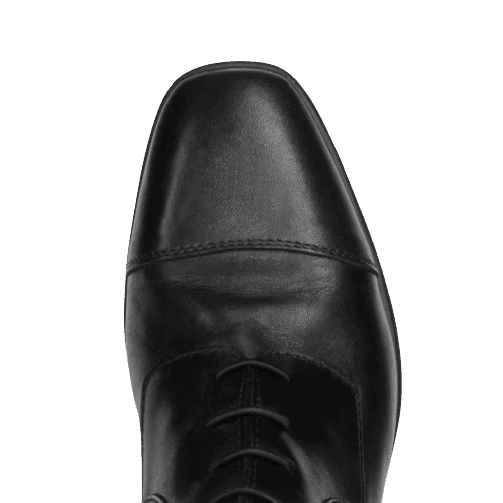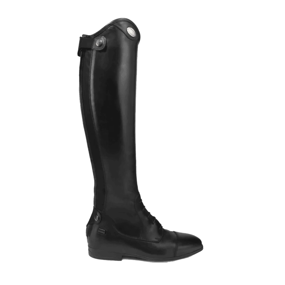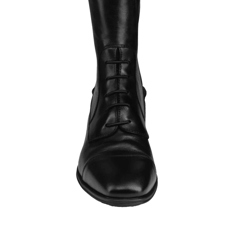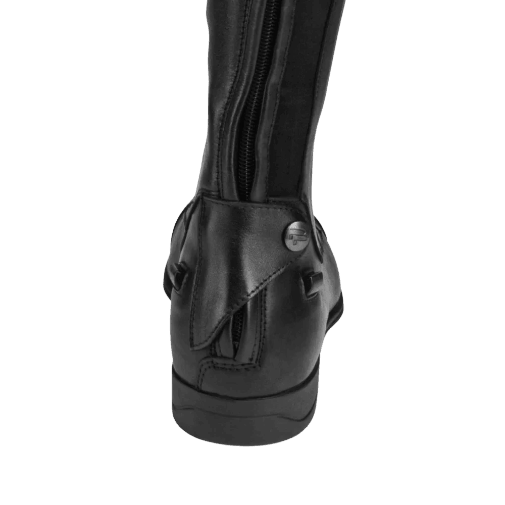 Experience the pinnacle of equestrian performance with Parlantis Black Dallas Pro Boots – crafted from full-grain calfskin and buffalo leather, featuring elastic laces and a rear band for flexibility and support. With an Italian touch and hi-performance sole containing shock-absorbing technology, these boots offer both grip effect and longevity. Available in black or dark brown with EU foot sizes, calf sizes, width & height options to ensure the perfect fit for every rider.