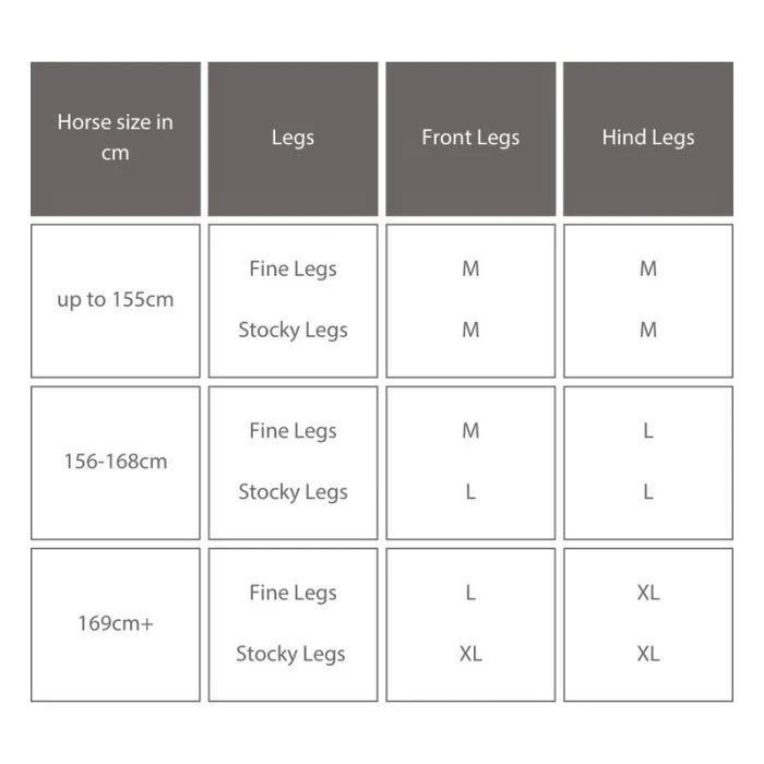 - Horse 156 – 168 cm fine legs front size M, fine legs hind size L