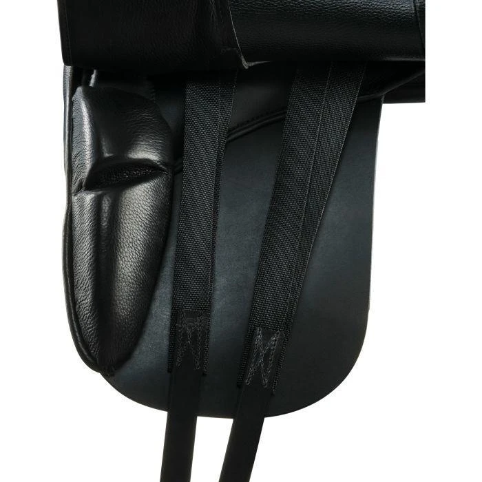 The dressage saddle “Genesis” features many functional and visual innovations. As in the jumping saddle “Genesis CS”, the panels are divided and offer a good position on the horse’s back with sufficient clearance for the horse’s spine. Moreover, the whole design of model “Genesis” focuses on the close proximity between horse and rider. Thus this new dressage saddle features a short front panel rib and a hinged knee roll, which results in an optimal position of the sweat flap as close to the horse as possible. The extremely deep, but in no way restricting seat was already a characteristic of the Maestoso series. This saddle is made of full grain cow hide.