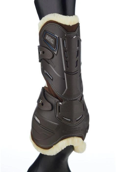 Traditional soft shell and leather boots have always offered protection from brushing, but the down side was limited protection from a strike. This led to many Hard Shell designs which offer this protection, but due to the nature of the “hard shell” they limit the natural range of movement of the horse. The Stübben & Evolution Hybrid range has been developed to be the natural Evolution of these products and the ultimate Hybrid combining the best of all designs which have come before.