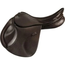 This jumping saddle is a modern flat seat made from their beautiful Embossed leather with wide contact surface and a wide channel that is preferred by the modern sports scene for Show Jumping and hunter classes.