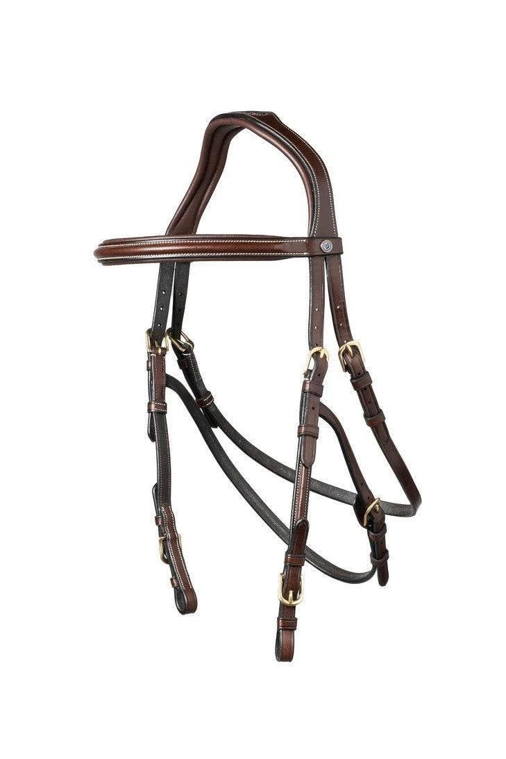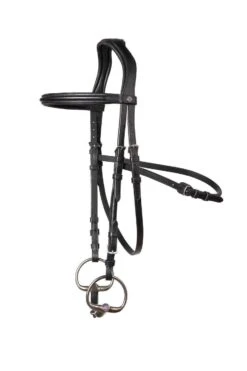 The TRUST Hickstead is a bridle that can be used in combination with a TRUST hackamore bit. This bridle has an extra jaw strap to keep the bridle in place. This jaw strap has a buckle protector. The headpiece is anatomically shaped and cut back for more freedom at the ears The padding of the headpiece is nice and soft but not too thick so that there is direct contact with the horse.