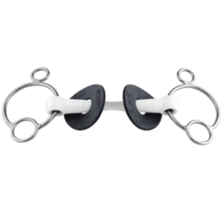 A 2.5 ring bit is a milder version of a 3 ring (pessoa) bit. With this bit a leverage can be created. The lower the reins are placed, the stronger the bit becomes. An ideal bit for horses that are very strong or hold the bit. Compared to the 2.5 ring, the eggbut rings cannot move loosely and therefore the rein aid works more directly.