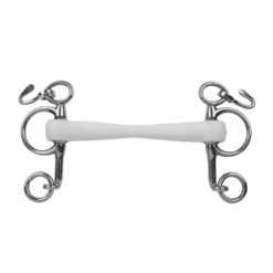 The Inno Sense Mullen is a straight bar that slightly bends forward. This mouthpiece is fabricated of synthetic material. The bit has a rigid core that makes the mullen bar not flexible but the material around it gives the bit a soft touch.