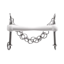 A weymouth fixed is used together with a bradoon, the so-called double bridle. This combination is used in the higher dressage classes. The weymouth is a cheekpiece with leverage. The longer the shanks the sharper the effect. The weymouth fixed has long shanks and therefore is a stronger bit than the baby weymouth fixed. For a double bridle combination a special bridle or an extra cheekpiece is required. In addition, this cheekpiece must always be combined with a curb chain to prevents the bit from rotating too far in the horse’s mouth. This bit is not suitable for the inexperienced rider.