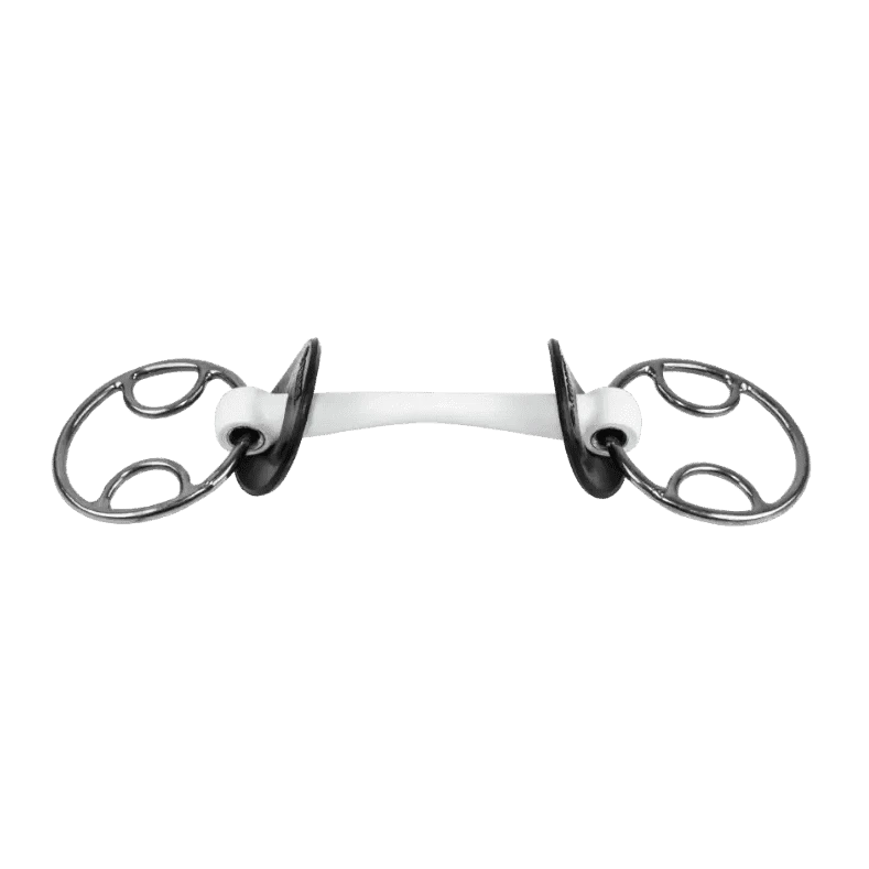 The Inno Sense Mullen is a straight bar that slightly bends forward. This mouthpiece is fabricated of synthetic material. The bit has a rigid core that makes the mullen bar not flexible but the material around it gives the bit a soft touch.