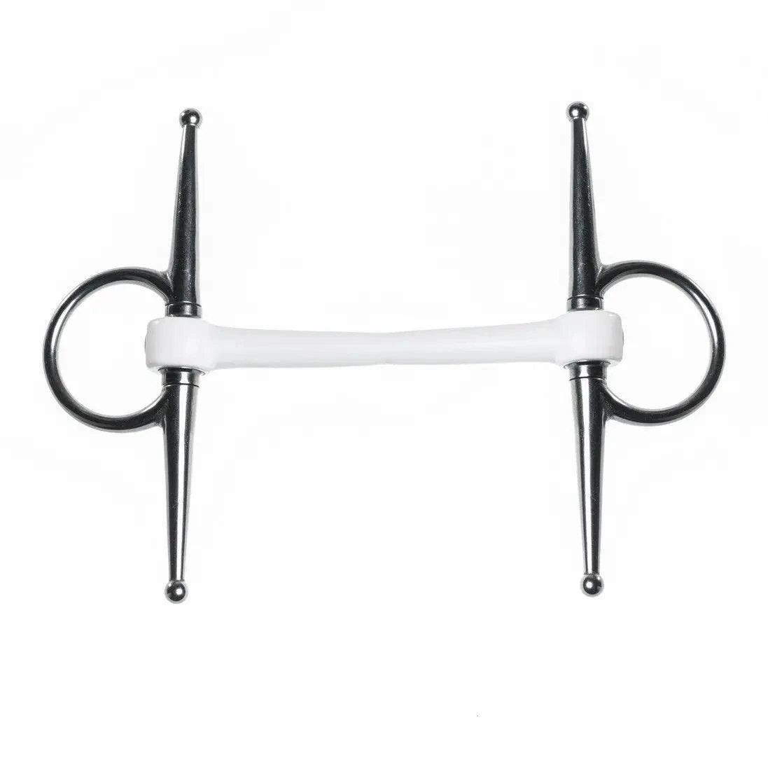 The Inno Sense Mullen is a straight bar that slightly bends forward. This mouthpiece is fabricated of synthetic material. The bit has a rigid core that makes the mullen bar not flexible but the material around it gives the bit a soft touch.