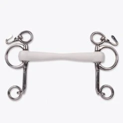The Inno Sense Mullen is a straight bar that slightly bends forward. This mouthpiece is fabricated of synthetic material. The bit has a rigid core that makes the mullen bar not flexible but the material around it gives the bit a soft touch.