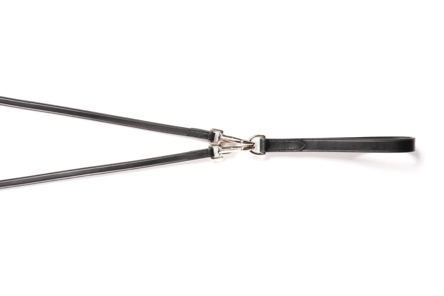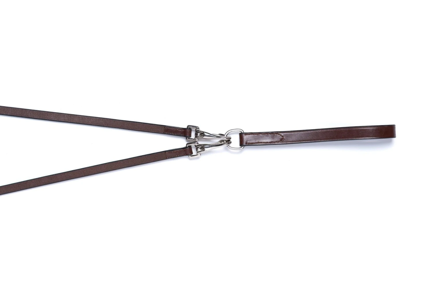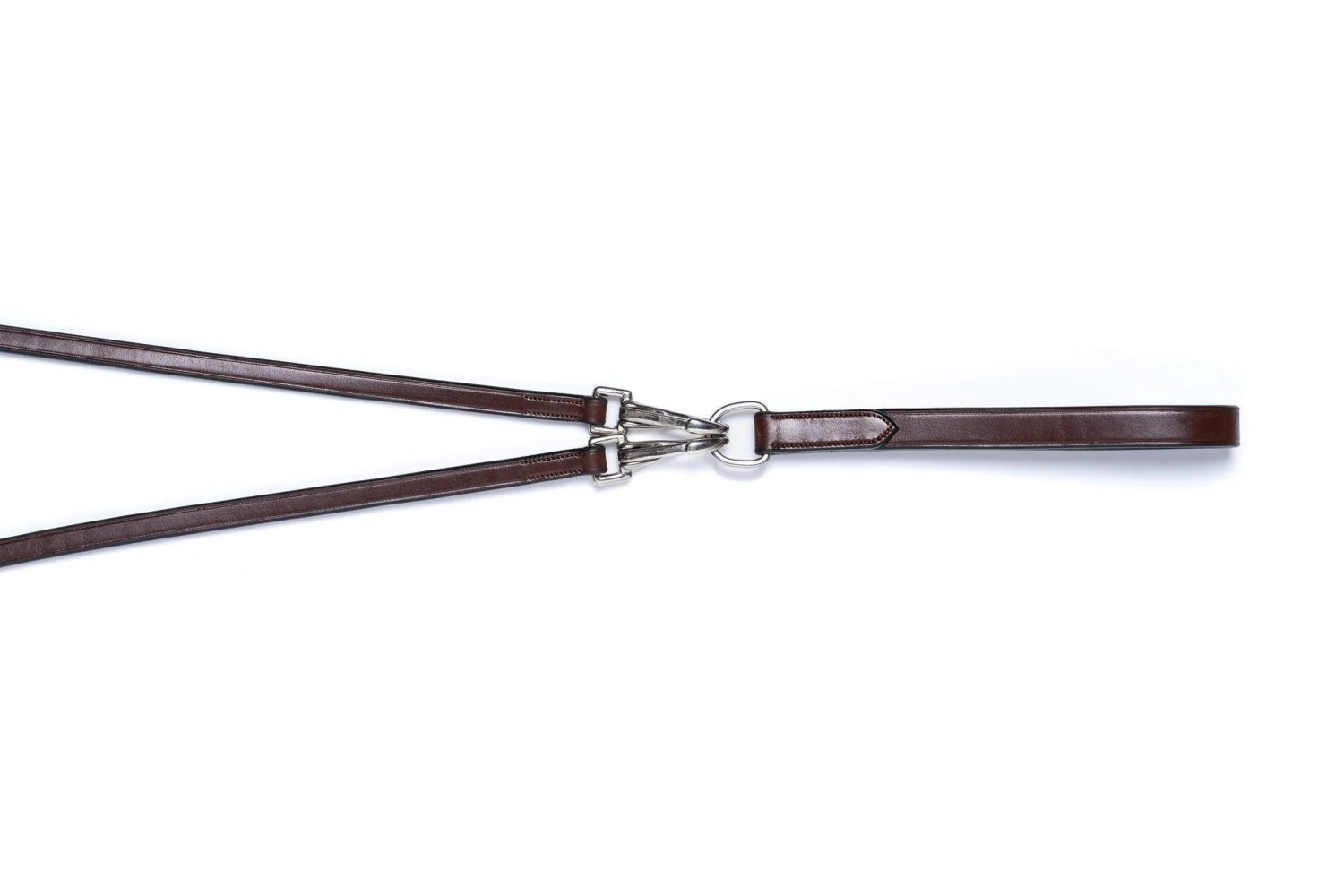The TRUST draw rein is part cord and part leather. It ensures smooth movement through the bit rings.