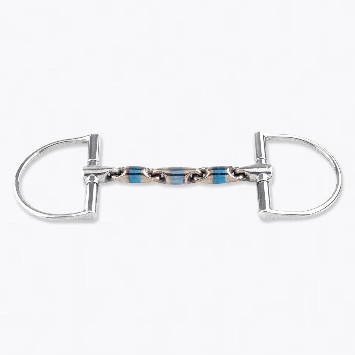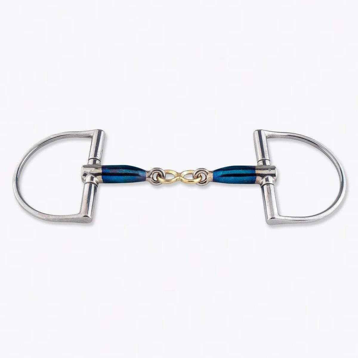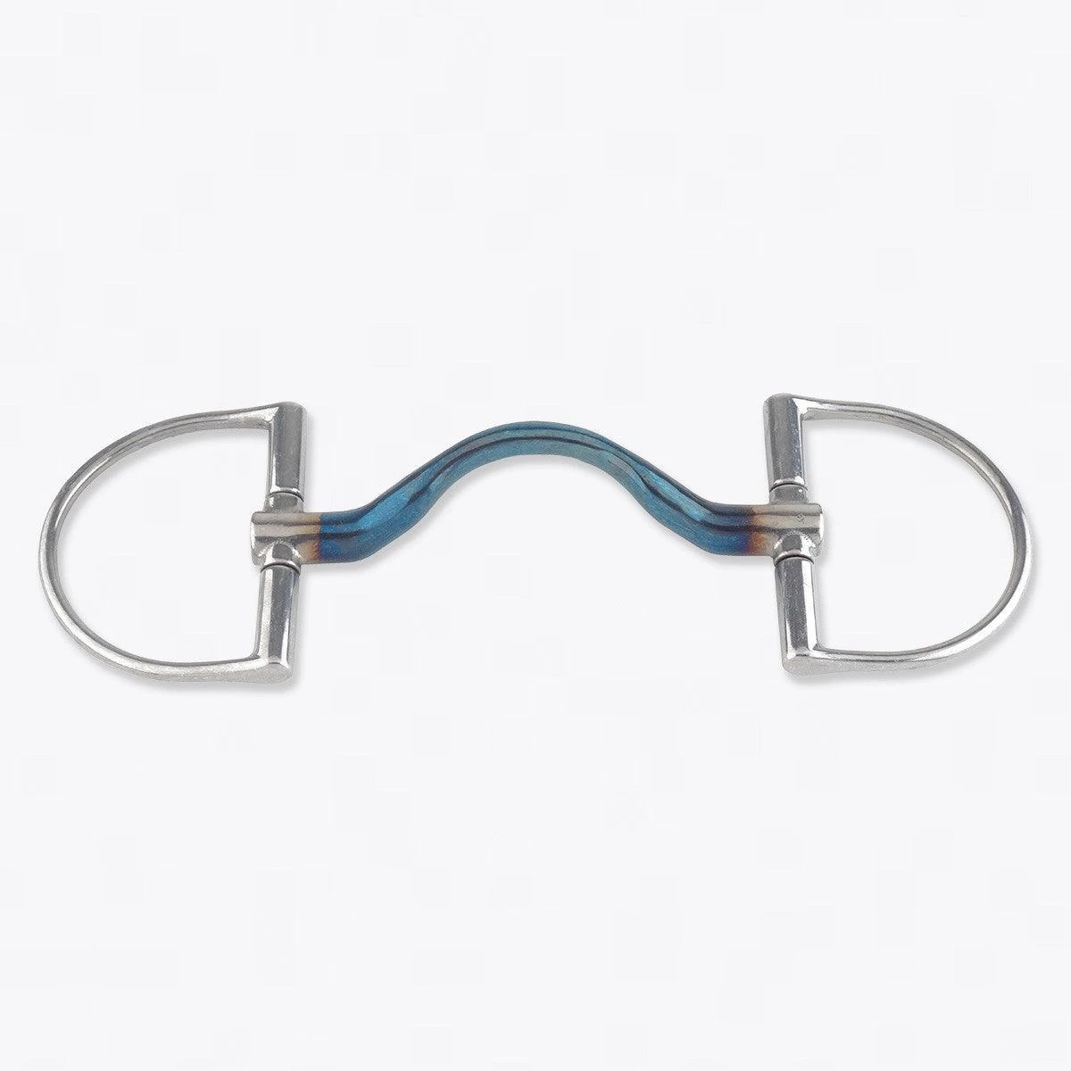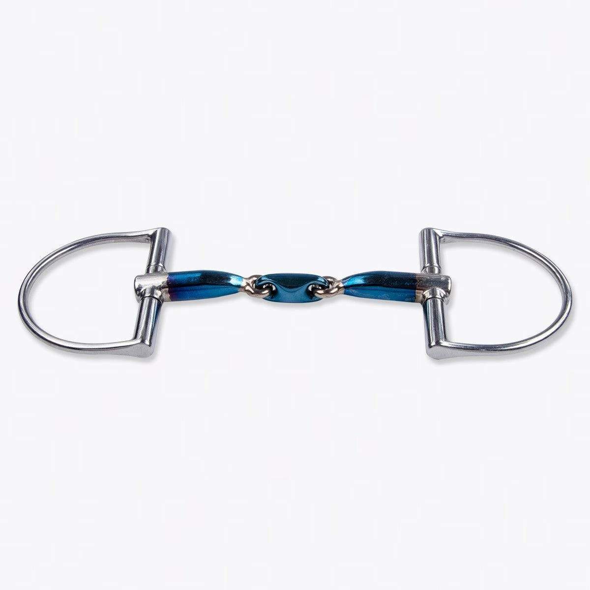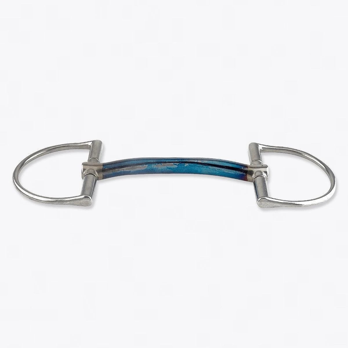 A Dee bit is the same as an eggbutt only the bit rings have the shape of a ‘D’. The straight section of the bitring ensures a ‘limitation’ and pressure distribution on the mouth and cheek of the horse. This makes the horse easier to turn and stops the bit from pulling through the mouth. This makes the D-snaffle bit useful for schooling young horses.