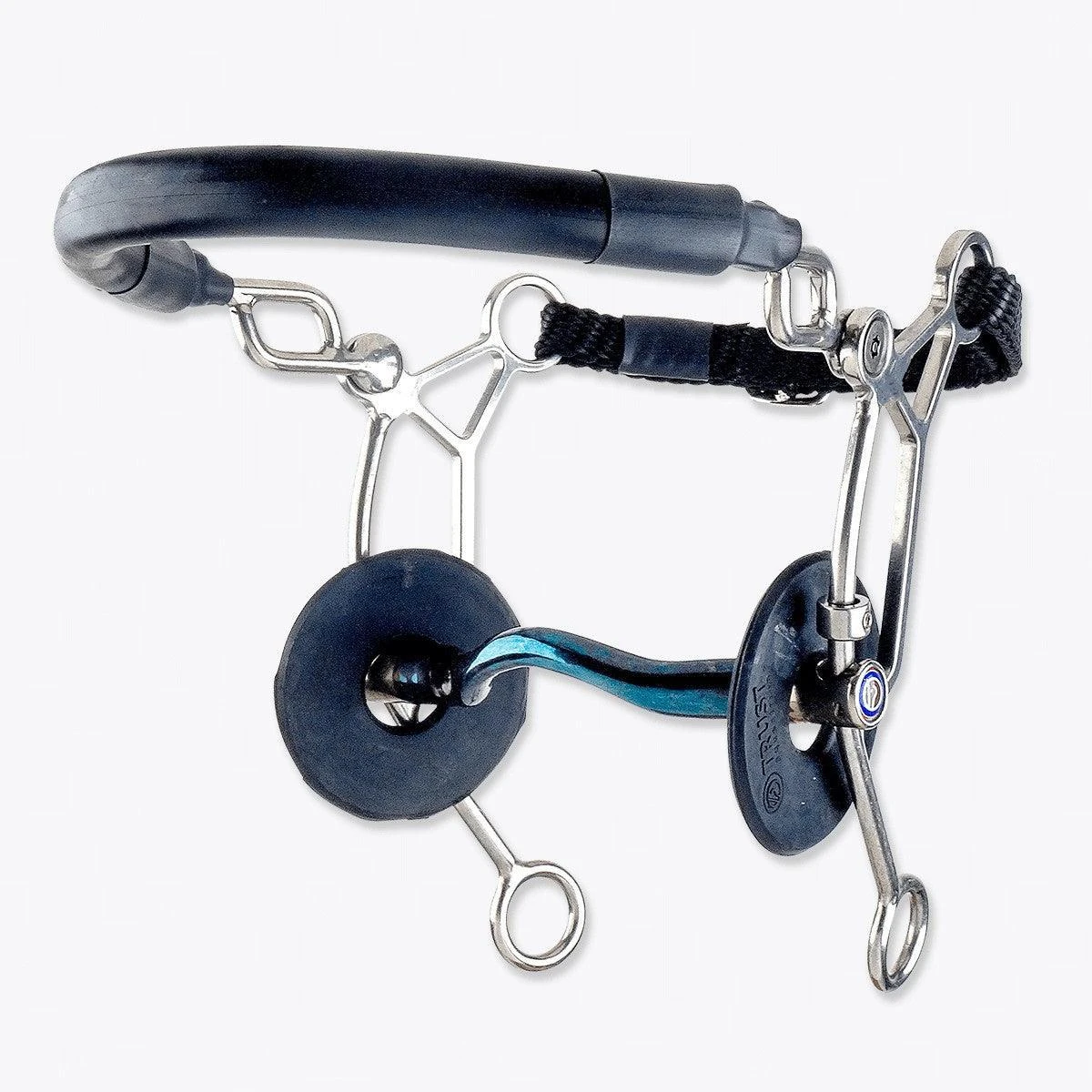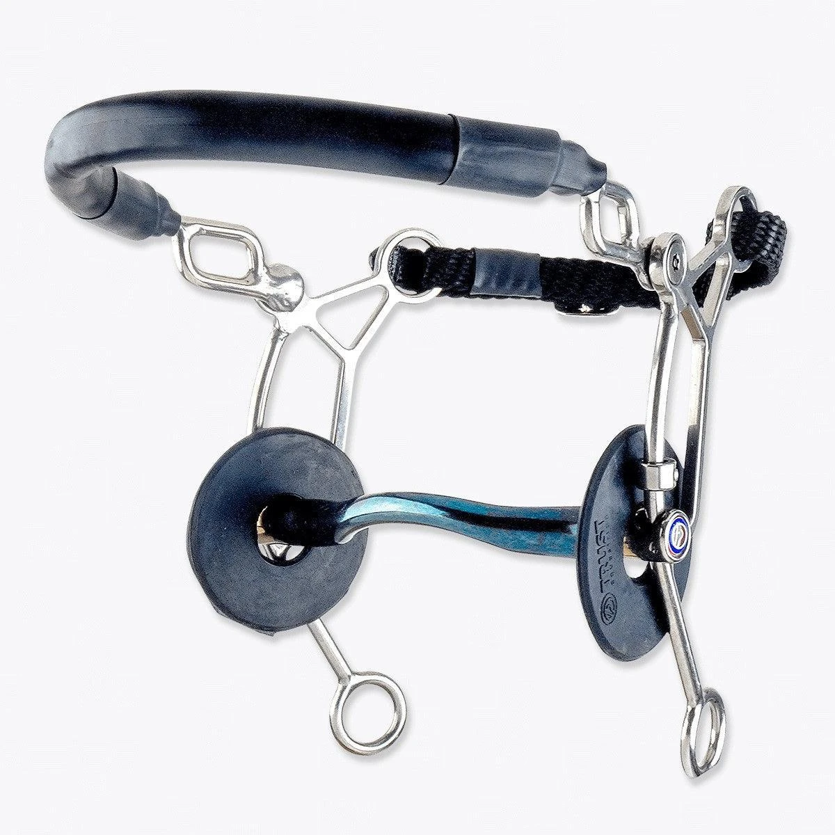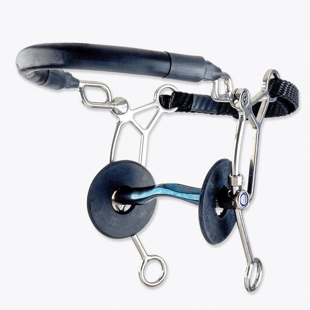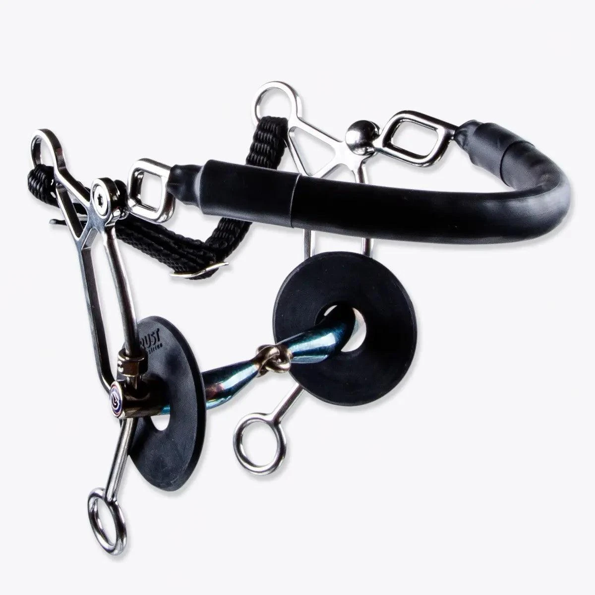This Hackamore Combi applies pressure to the horse’s nose and chin as well as across their tongue. With long shanks.