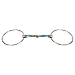 The mouthpiece with brass rings is a variant of the double-jointed bit. The rings in the middle stimulate the horse to play with the bit. This increases the tongue activity so that the horse will produce more saliva and the jaws can relax more.
