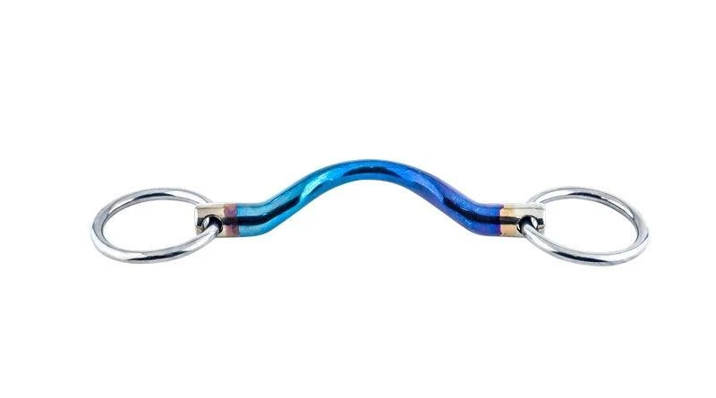 The Sweet Iron bits are made of steel and have a recognizable blue color. Sweet Iron will rust when it comes into contact with (air) humidity, the surface rust tastes sweet and naturally stimulates the saliva production. This will cause the horse to salivate more, which in turn will encourage a better acceptance of the bit.