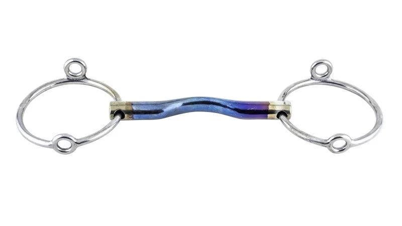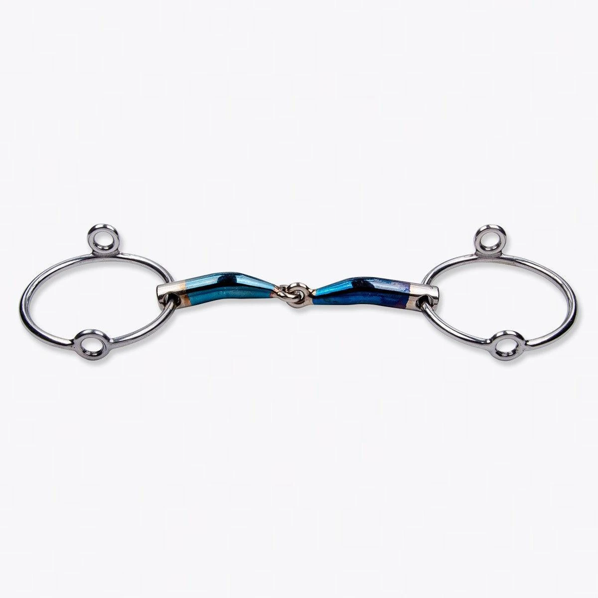 The Sweet Iron bits are made of steel and have a recognizable blue color. Sweet Iron will rust when it comes into contact with (air) humidity, the surface rust tastes sweet and naturally stimulates the saliva production. This will cause the horse to salivate more, which in turn will encourage a better acceptance of the bit.